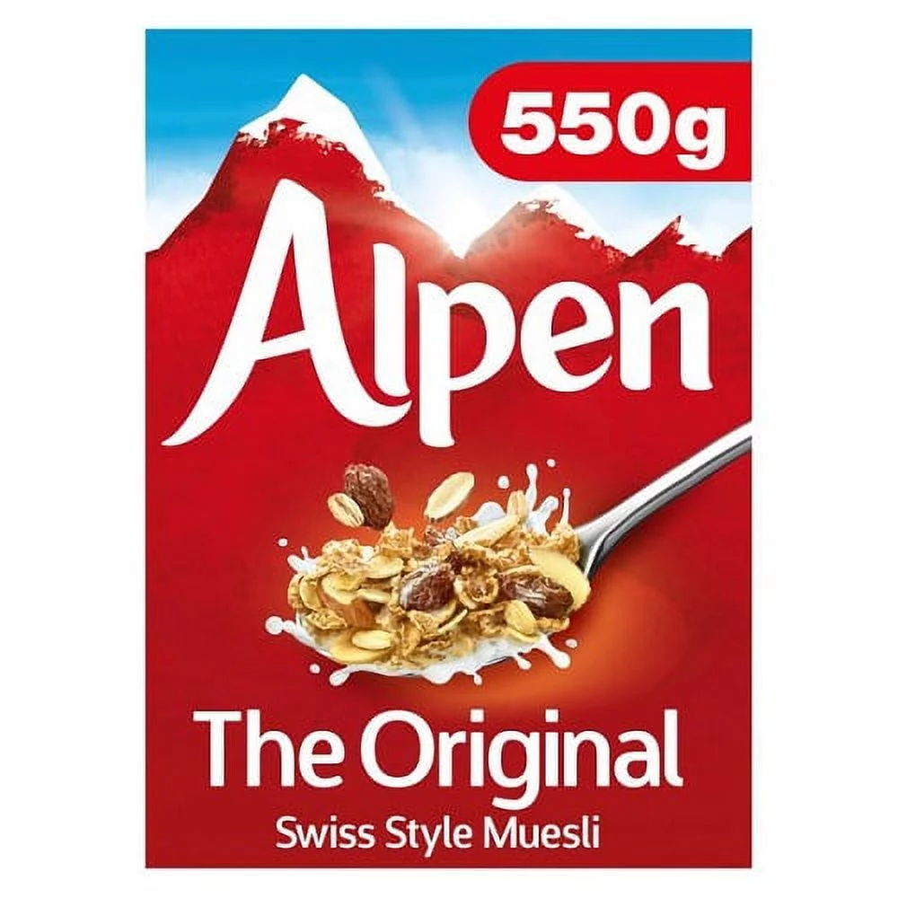Alpen muesli gives you tasty satisfaction by the spoonful. Every bowl of our original Swiss muesli is cram packed with an abundance of delicious ingredients. Juicy raisins to help provide fiber, crunchy nuts, creamy rolled oats and wholegrain wheat flakes that help provide energy to start your day the right way. An original Swiss style muesli, packed full of the finest natural ingredients and classic muesli taste. It helps provide energy to the body as part of a healthy diet and lifestyle.