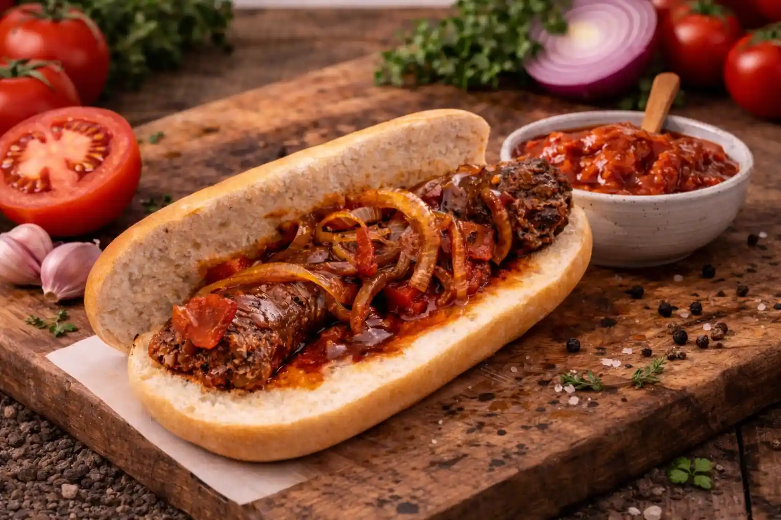 A sweet and tangy Tomato and Onion Relish with a thick, hearty texture. Perfect for Boerewors rolls, burgers, sandwiches, Braai meats and everyday meals.