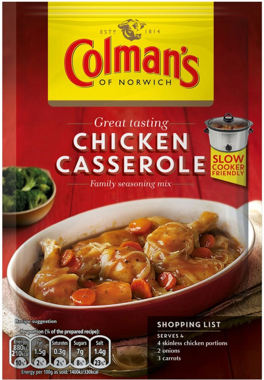 Colman’s brings you the Chicken Casserole Mix. Great tasting family seasoning mix. Add it to your Casserole dish, your family will love it!