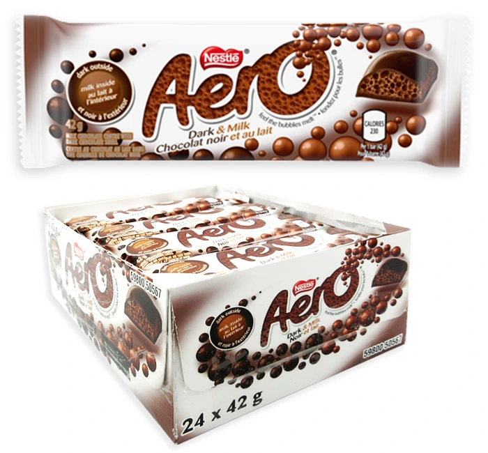 Bubbly Aero chocolate combining smooth milk chocolate and rich dark chocolate for a light melt in your mouth chocolate bar.