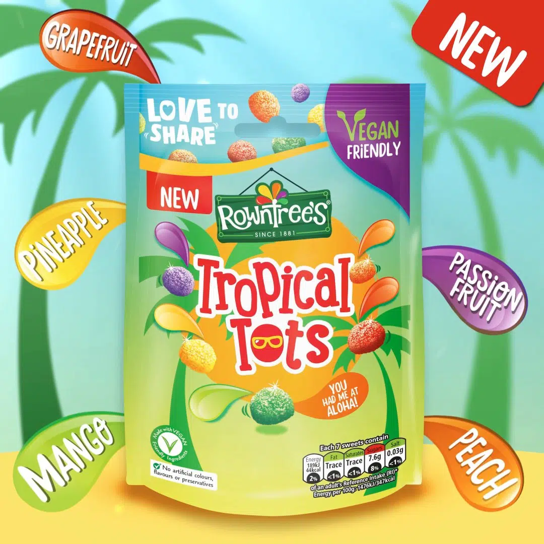 These joyfully colourful chewy Tropical Tots® sweets are brought to you by Rowntree’s®, the makers of the classic Fruit Pastille. The story begins in 1862, when Henry Rowntree bought a cocoa works in York and transformed it into a confectionery company. Fruit Pastilles were invented in 1881, and since then we’ve been inventing even more delicious ways to enjoy fruity-flavoured sweets, such as Jelly Tots®. Following on from this, the confectionery company developed Rowntree’s® Fruit Gums and Jelly Tots®. 2009 saw the launch of the newest edition to the family – Rowntree’s® Randoms®. All sweets in the Rowntree’s® family are a great way to enjoy a more colourful, fruity-flavoured treat time.